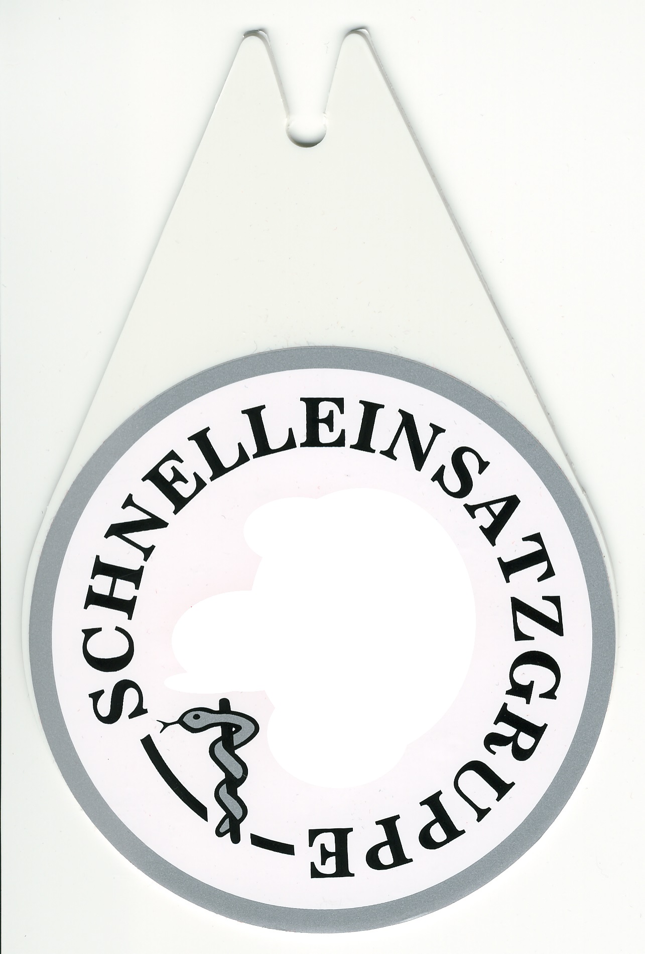 DRK-Autoplakette, Autoplakette mit Saugnapf, Autoplakette in Tropfenform, Saugnapfschild, DRK-Plakette,
