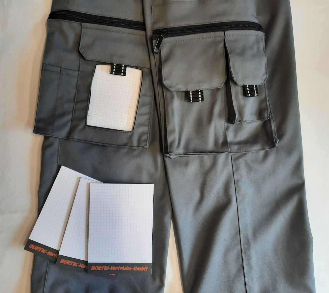 - rechte Oberschenkeltasche mit Blocktasche DIN A6 und Stiftefach mit Reißverschluss