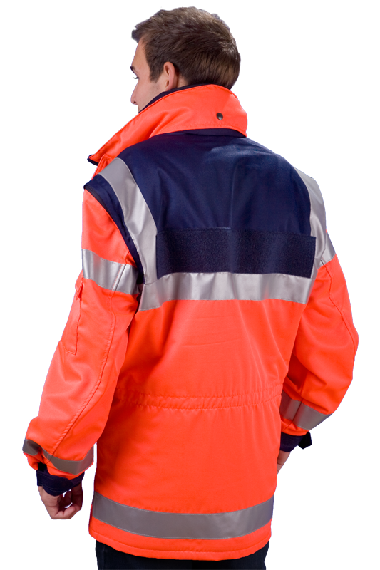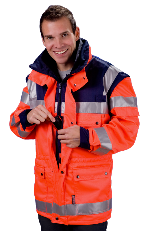 - benäht mit 3M-Scotchlite silber 9910 gem. EN 471/Klasse 3 (Industriewäsche geeignet)
