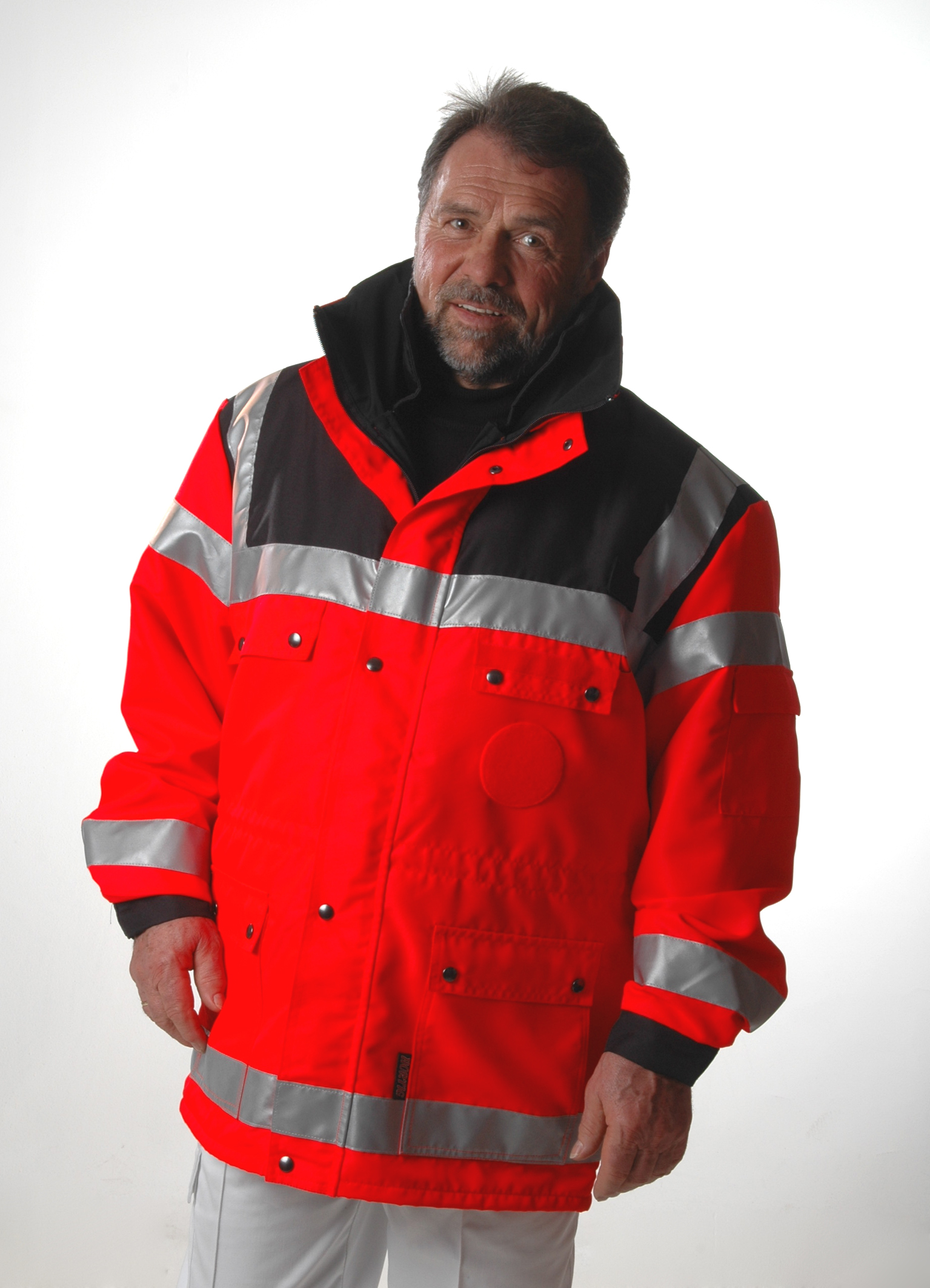 - benäht mit 3M-Scotchlite silber 9910 gem. EN 471/Klasse 3 (Industriewäsche geeignet)