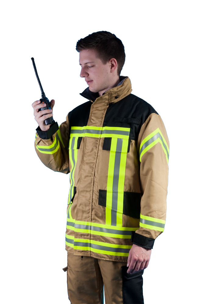 Einsatzjacke für THL, Feuerwehrjacke in beige/schwarz, Jacke für Technische Hilfeleistung,