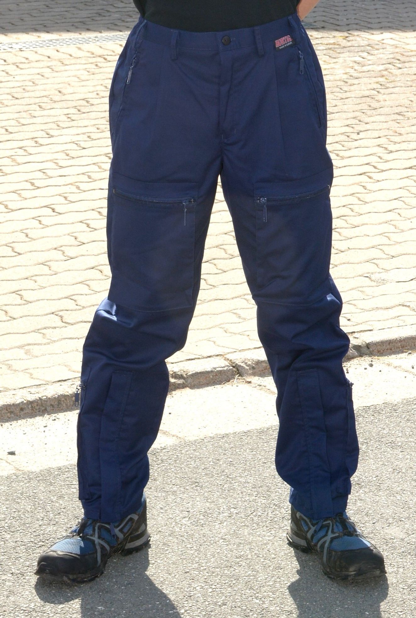 - zwei Taschen am unteren Bein mit Reißverschluss