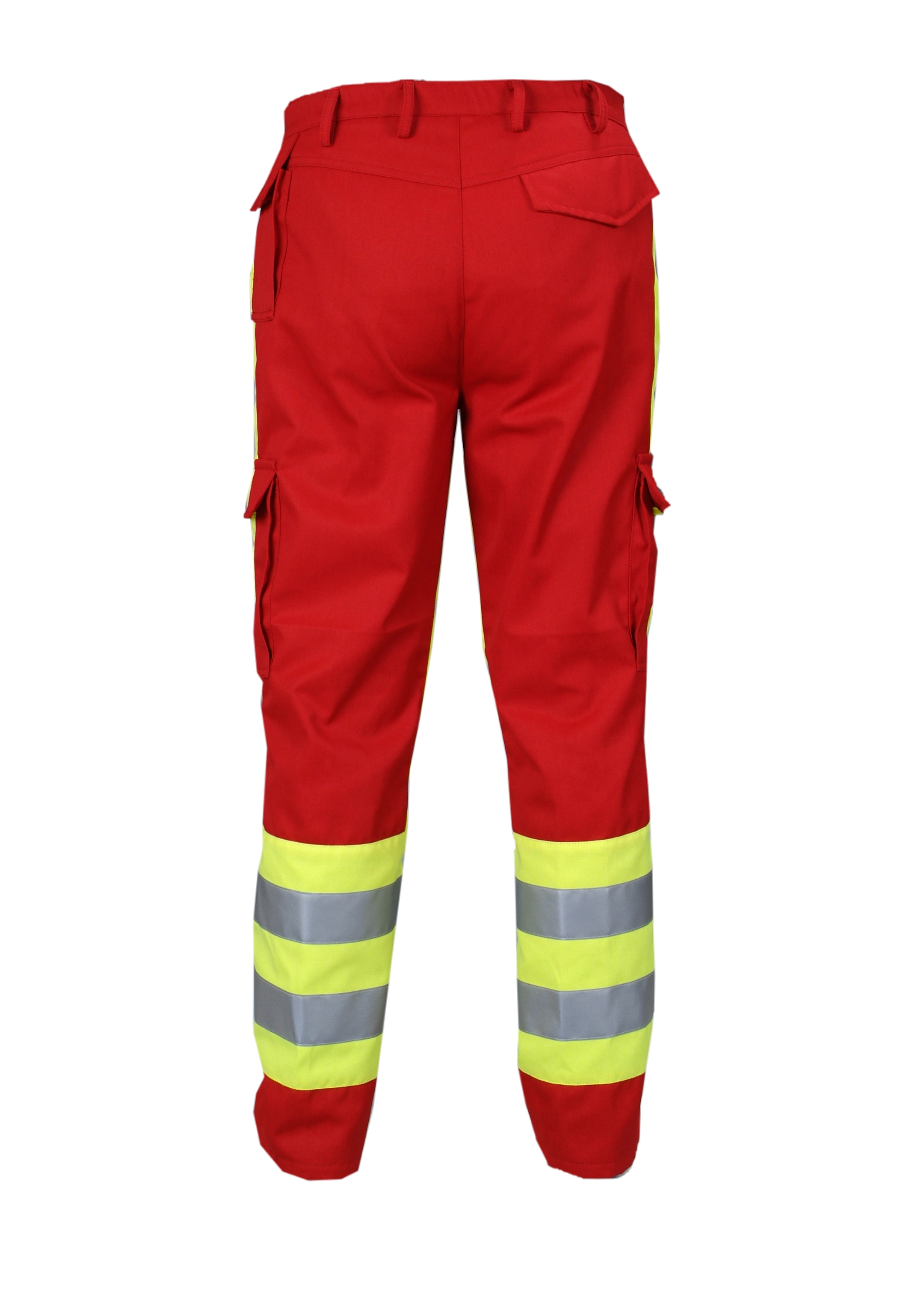 Einsatzhose dunkelrot/neongelb Art. 7893/2, Hose aus Trevira, dunkelrote Rettungsdiensthose mit Reflexstreifen, neongelb/rote Hose,