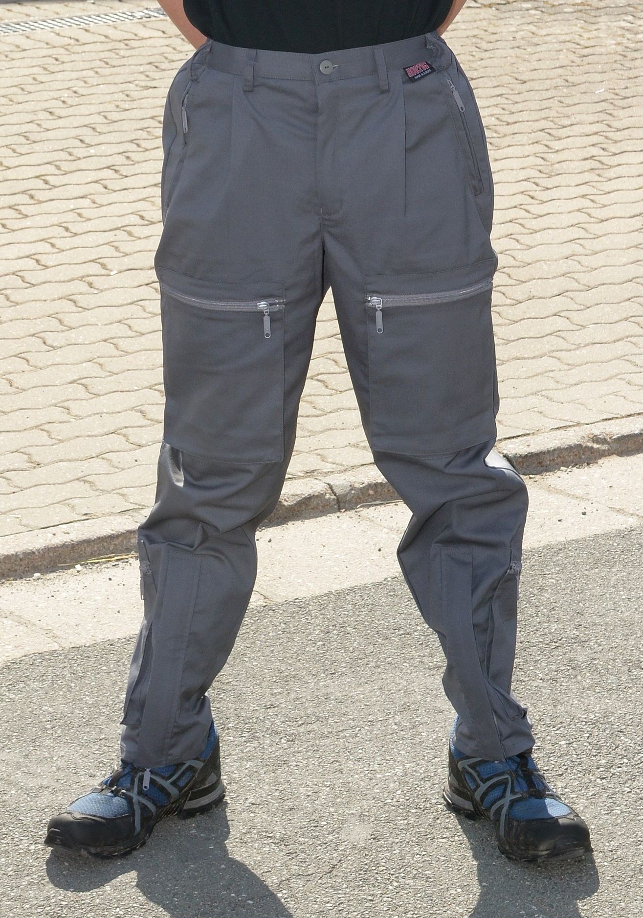 Stretch-Fly grau Art. 2064, graue Hose mit praktischen Taschen, Reißverschlusstaschen an den Oberschenkeln,