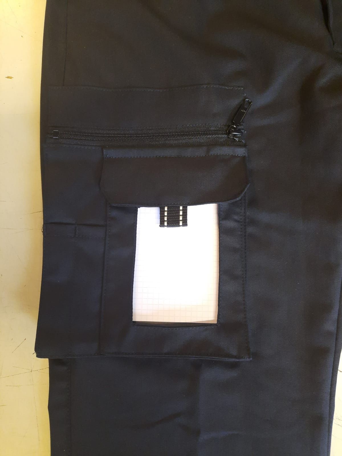 - rechte Oberschenkeltasche mit Blocktasche DIN A6 und Stiftefach mit Reißverschluss