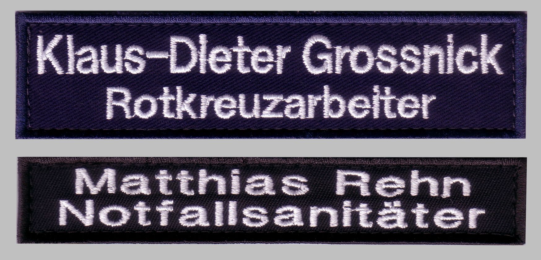 Namensschild zweizeilig, Namensschilder selbst gestalten, individuelle Namensschilder, Namensschild gestickt, Namensabzeichen,