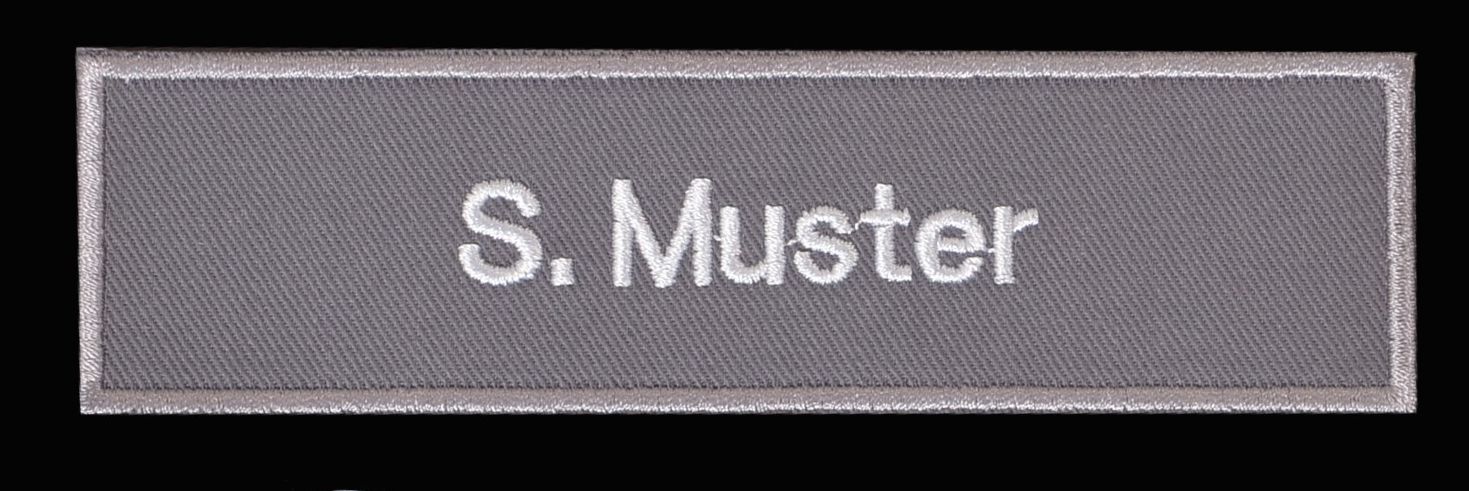 Namensschild grau einzeilig, DRK-Namensschild, Namensschilder selbst gestalten, individuelle Namensschilder, Namensschild gestickt, Namensabzeichen, Namensschilder für Notfallseelsorge,