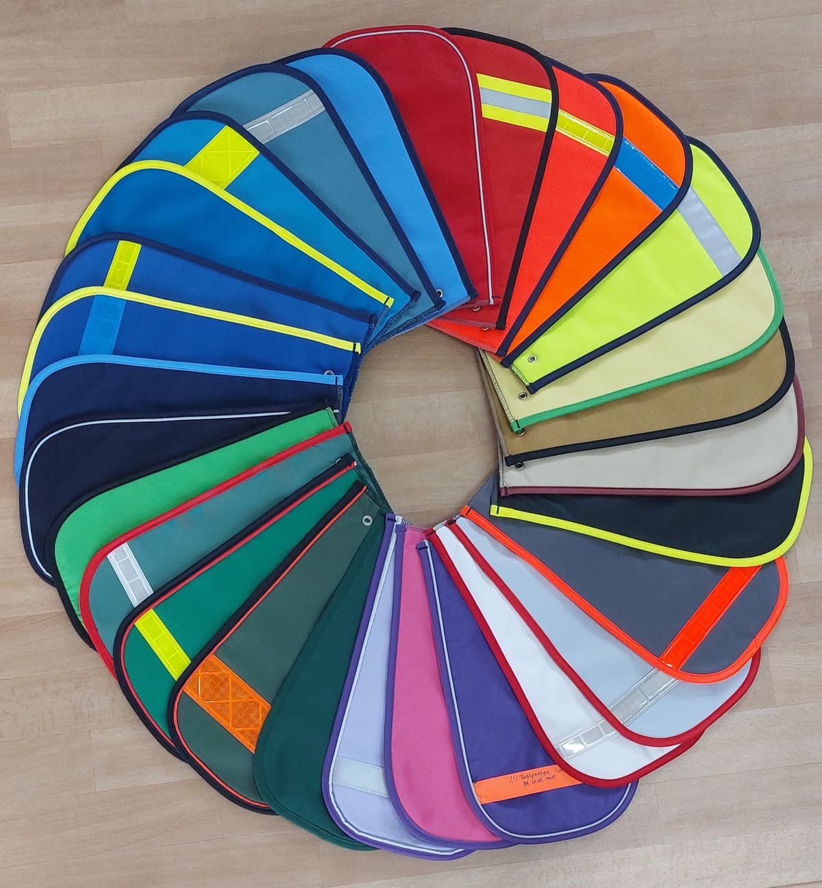 - Auf Wunsch auch mit reflektierender Paspelierung an der Außenseite (Rand) in silber oder rot lieferbar