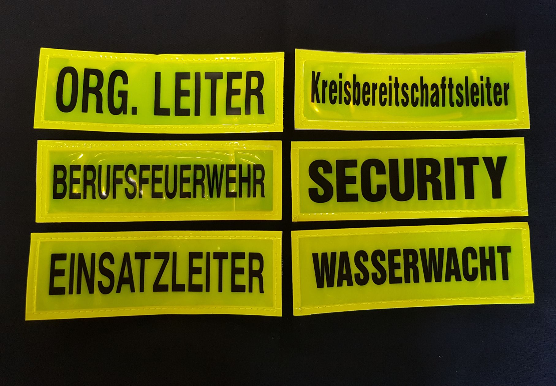 Brustschilder gelb, Schilder in gelb/schwarz, reflektierende Schilder 15x5 cm