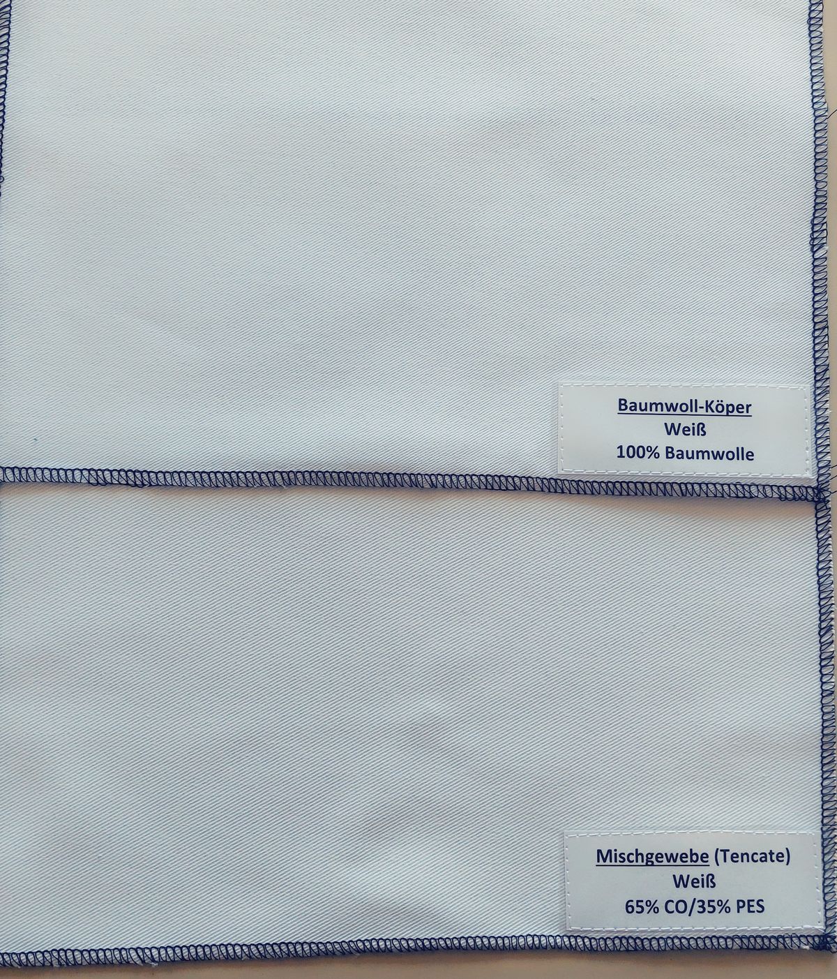 -> links: weiss - 100% Baumwolle, Baumwoll-Köper