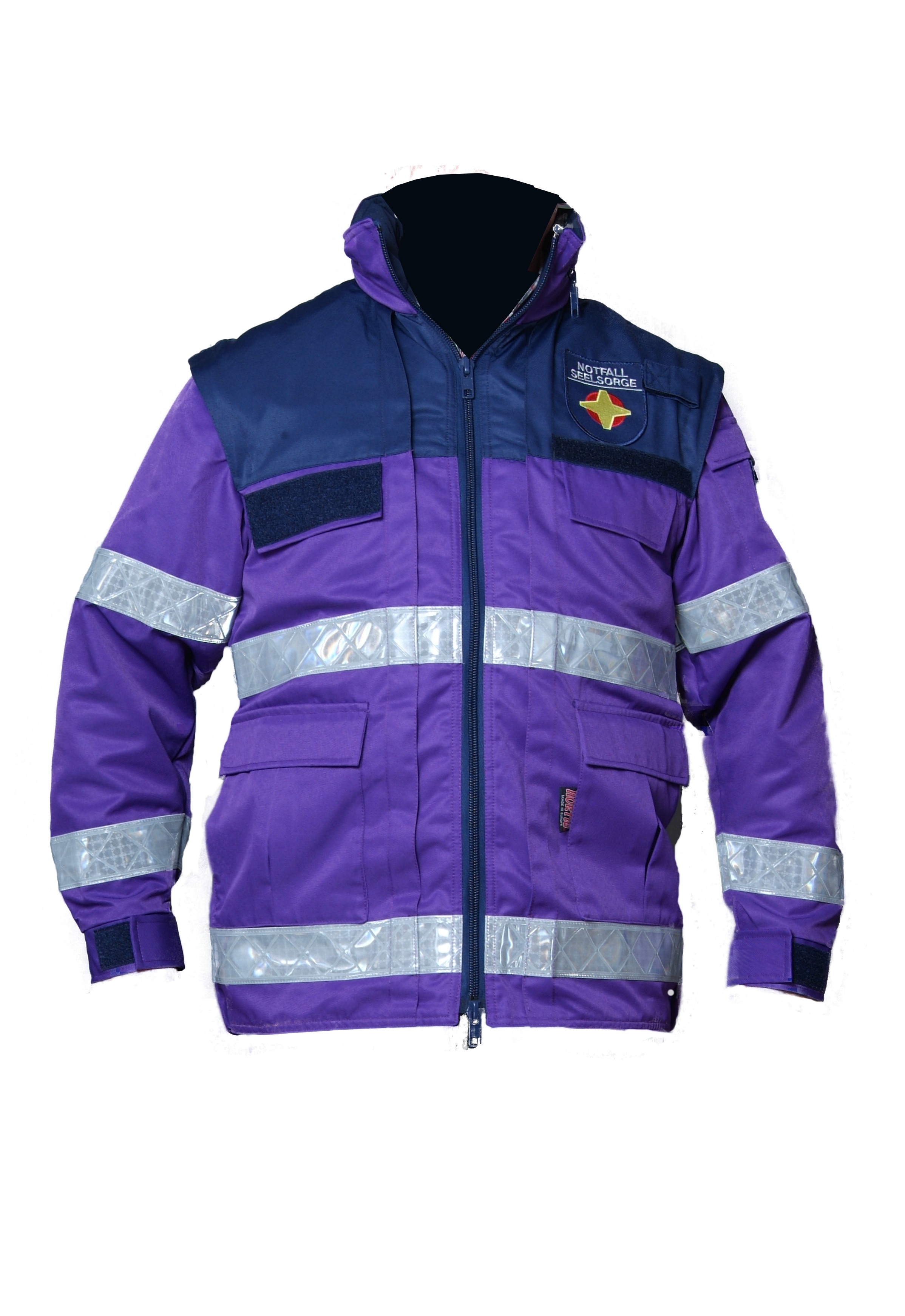 - NOTFALLSEELSORGE-Emblem auf linkem Arm und linker Brust fest aufgenäht