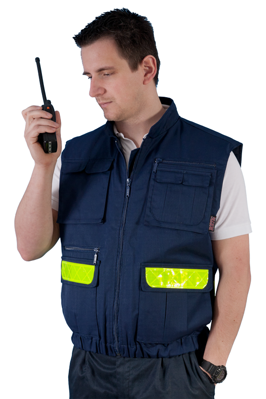 Einsatzweste blau, Arbeitsweste mit Reflexstreifen, Rettungsdienstweste, blaue Weste, Body, wattierte Weste,