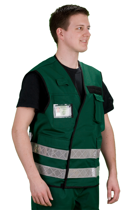 Kennzeichnungsweste dunkelgrün Art. 9700/Grün, dunkelgrüne Weste, Überwurfweste mit Reflexstreifen und Taschen,