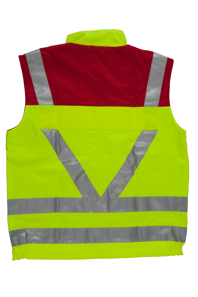 Einsatzweste neongelb/dunkelrot Art. 9352/V/R, neongelbe Weste, Rettungsdienstweste neongelb mit Reflexstreifen,
