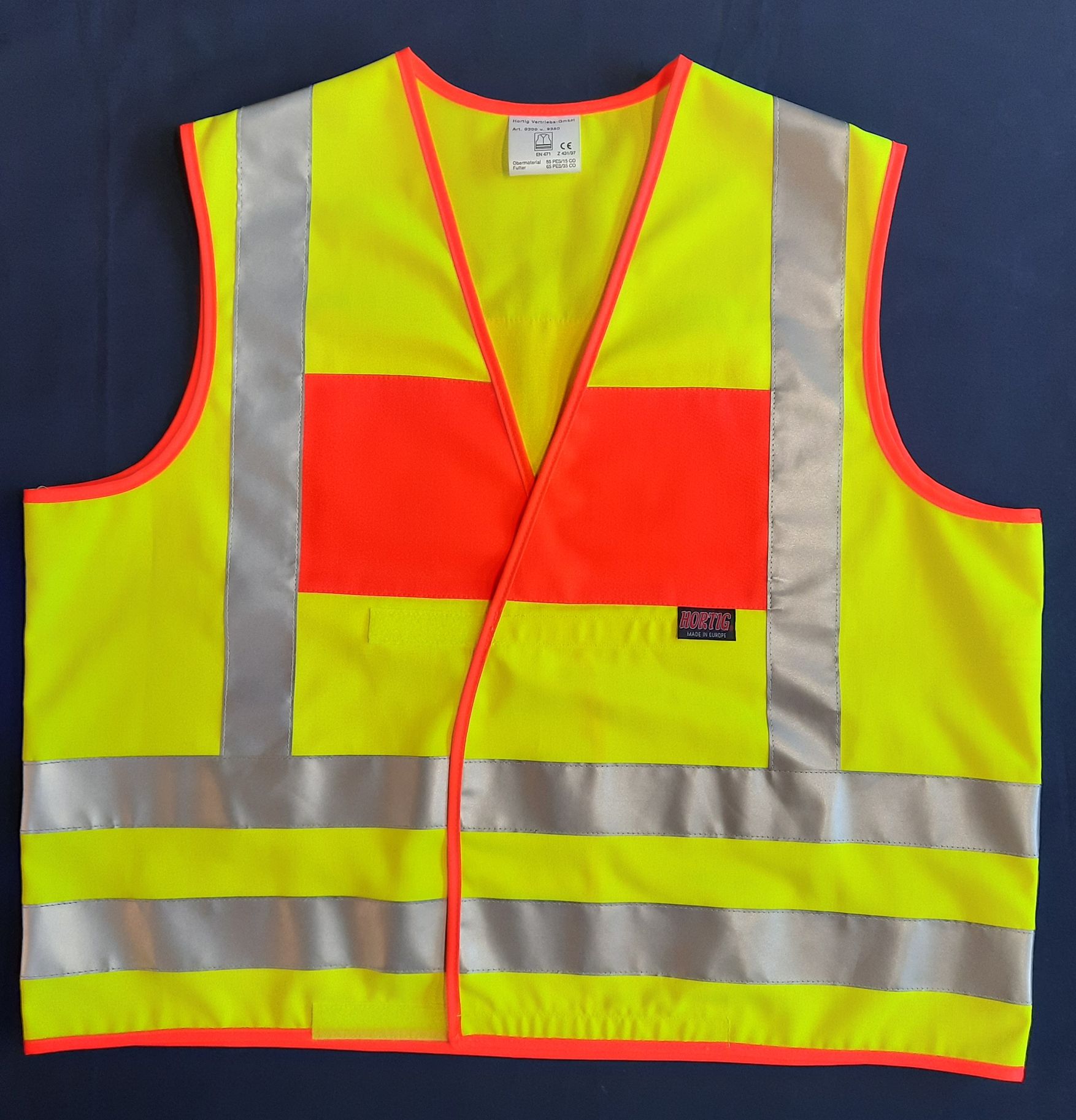 Schulweste neongelb/leuchtrot, Überwurfweste mit Reflexstreifen, Weste Schulsanitäter,